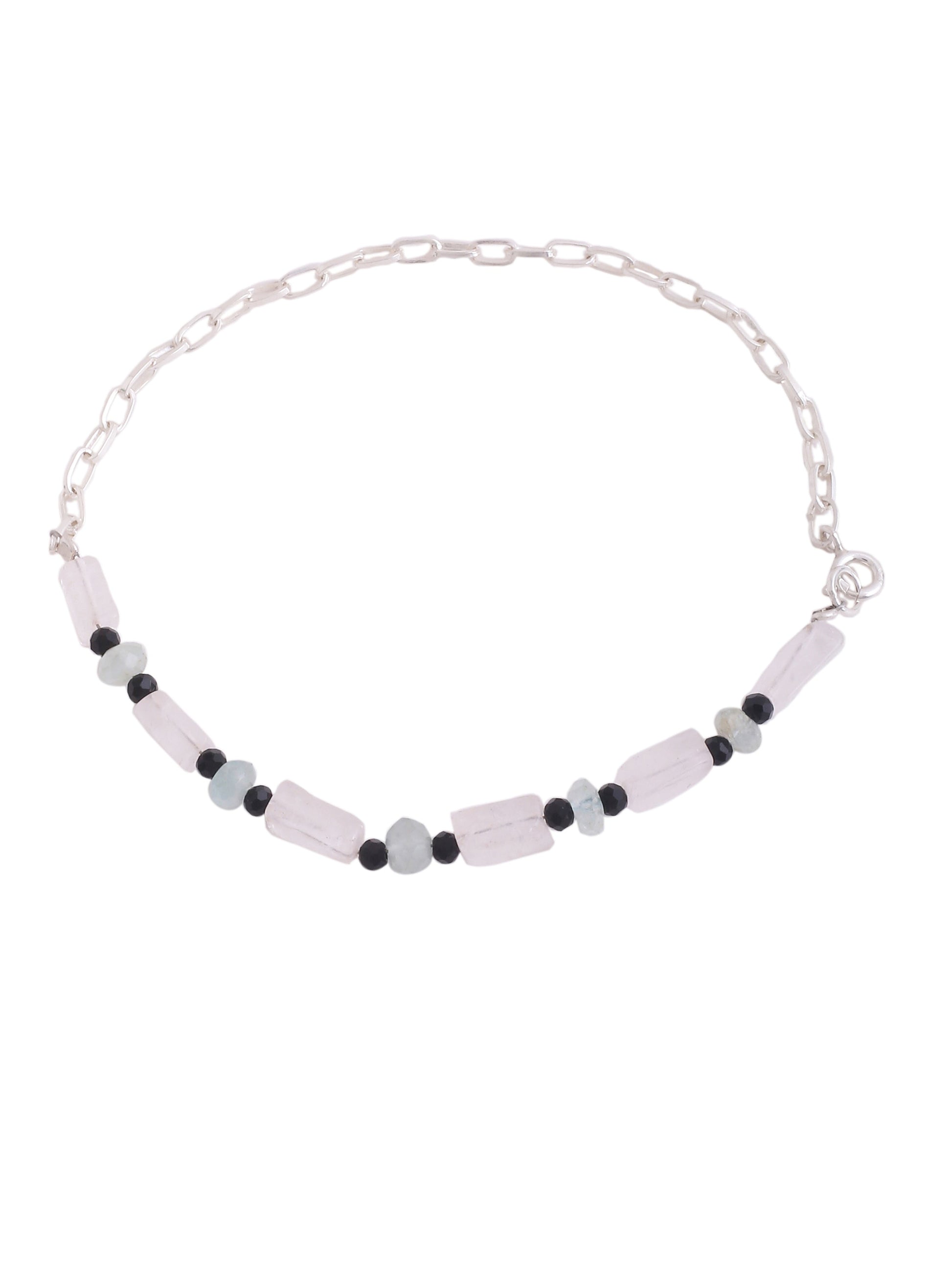 Beads Quartz Initial Adorned 925 Sterling Silver Anklet For Women