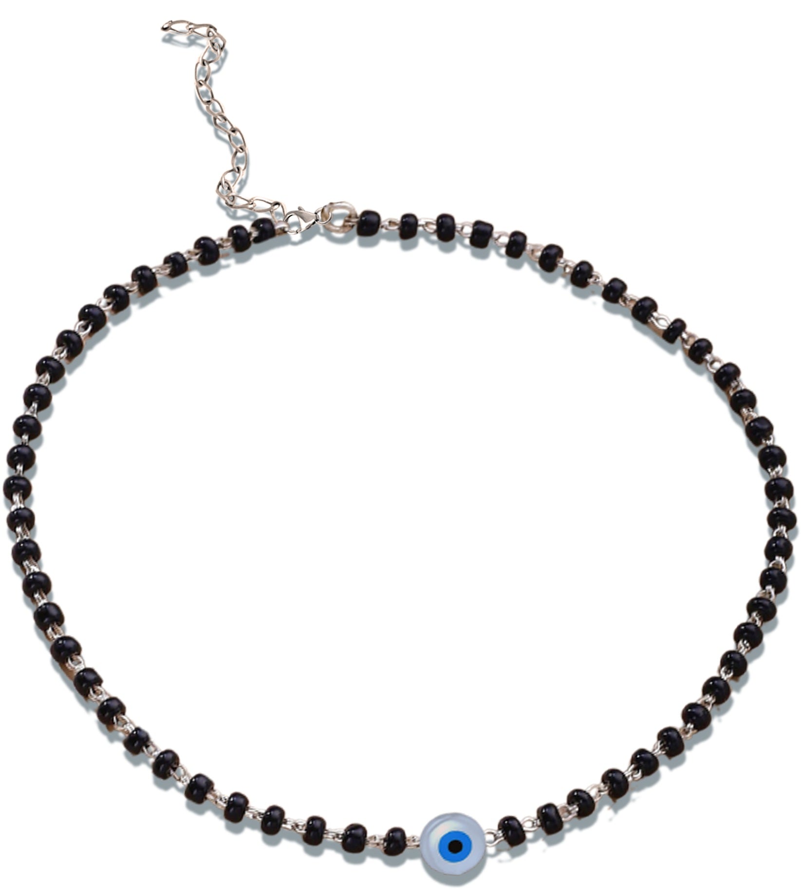 925 Sterling Silver Evil Eye Black Beads Anklet For Women