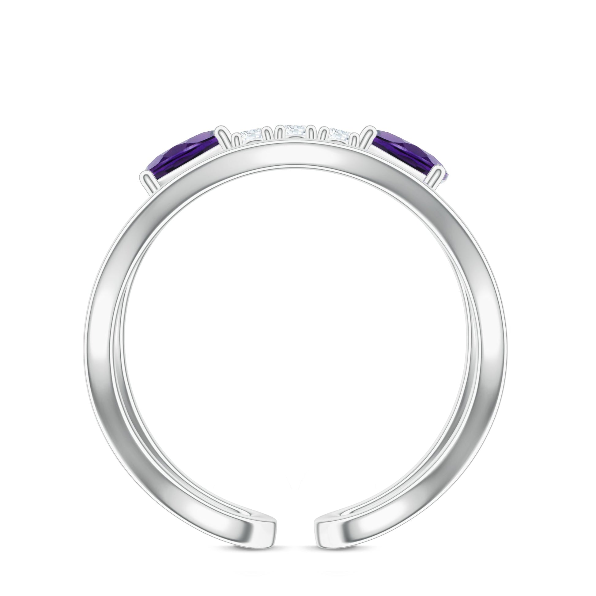 Adjustable Amethyst and Moissanite 925 Sterling Silver Ring For Women